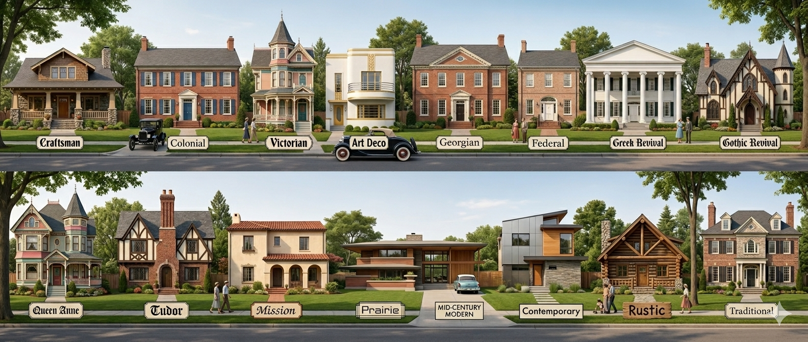 Click any house to find millwork designs that match its style.